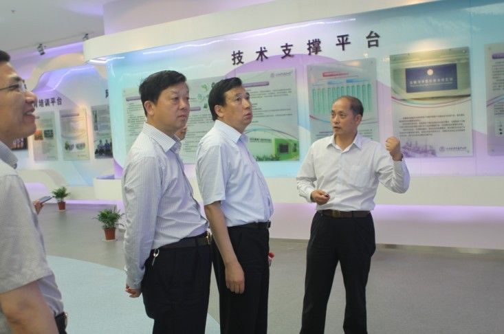 5月15日下午,由宜興市委書記王中蘇、市長張立軍率領的宜興市黨政代表團一行30余人來數字園參觀考察?;萆絽^區委書記、區人大常委會主任吳仲林,區委副書記、區長顧中明,區委常委、惠山經濟開發區管委會主任楊建平等領導熱情接待。