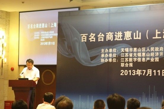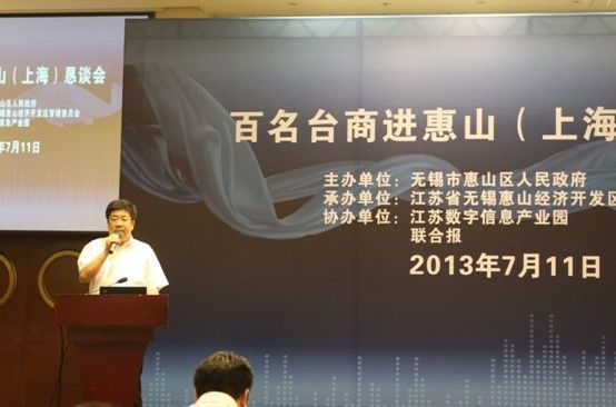 7月11日下午,由惠山區人民政府主辦、惠山經濟開發區管委承辦、江蘇數字信息產業園和聯合報協辦的“百名臺商進惠山”活動啟動儀式暨懇談會在在上海華納酒店國際會議中心舉行。區領導楊建平、吳燕、沈偉良、浦明峰、張勝良、秦萬興等,臺資企業代表劉陳華、黃進能、胡寶妮等,還有各個園區的負責人出席了會議。會議由惠山區副區長吳燕主持。