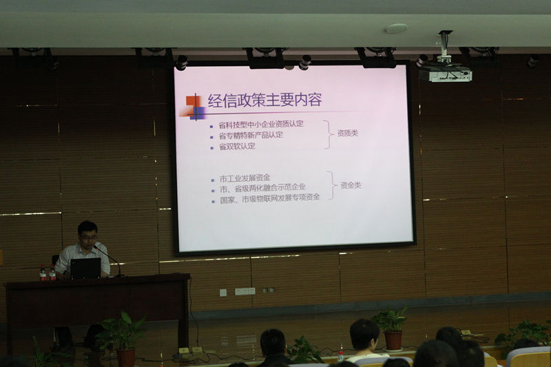 首先,由開發區墩苗工作組劉軍作科技政策解讀。劉軍從事科技方面工作十余年,他先以深入淺出的語言和大家分享了走科技企業道路的感悟,吸引了企業家們的興趣,隨后又為大家詳細解讀了稅收優惠政策、財政引導政策、科技金融政策等,并強調了科技型企業申請知識產權和做研發費用加計扣除的重要性。園區科技服務部任曉海則為大家細致地講解了經信及人才政策,包括高新技術企業、工業發展引導資金、江蘇省雙創計劃等,為企業申報提供指導。