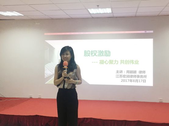 為了幫助入園企業進一步了解股權激勵方面的知識,2017年8月17日,園區特邀周穎穎律師為廣大入園企業作專題分享,共有26家企業參加了此次活動。