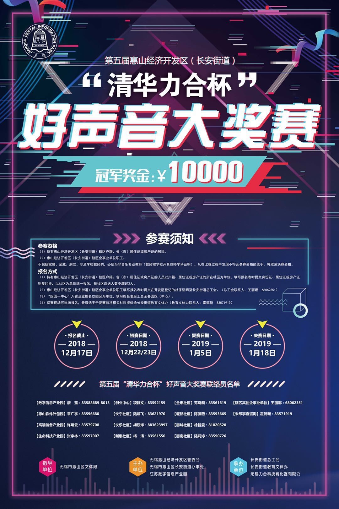 【活動通知】第五屆惠山經濟開發區(長安街道)“清華力合杯”好聲音大獎賽來啦!