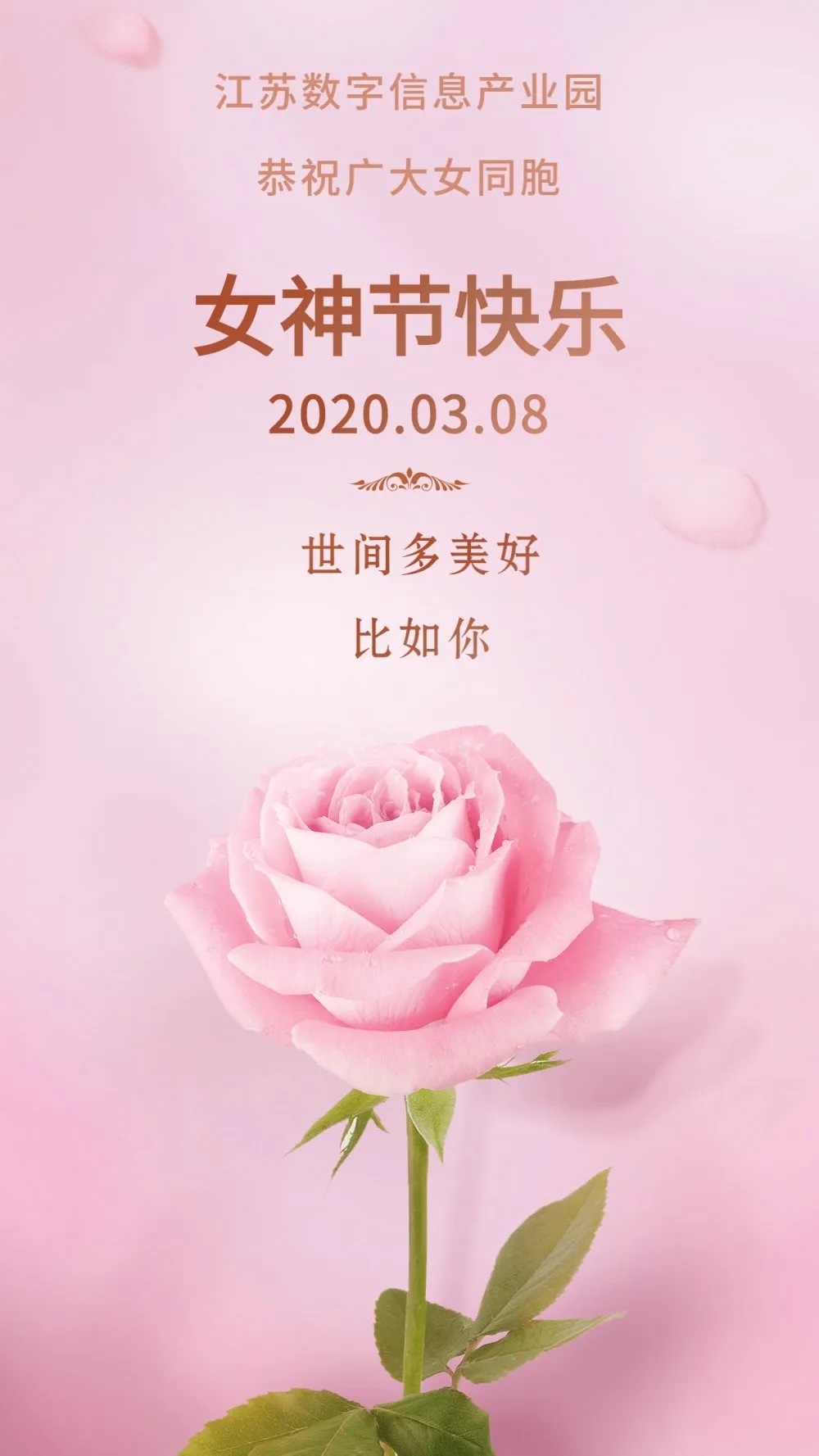 親愛的園區女同胞們,值此國際三八婦女節110周年到來之際,為你們送上祝福海報,園區祝您節日快樂,帶著溫柔堅定的力量前行,美麗、優雅、有愛。