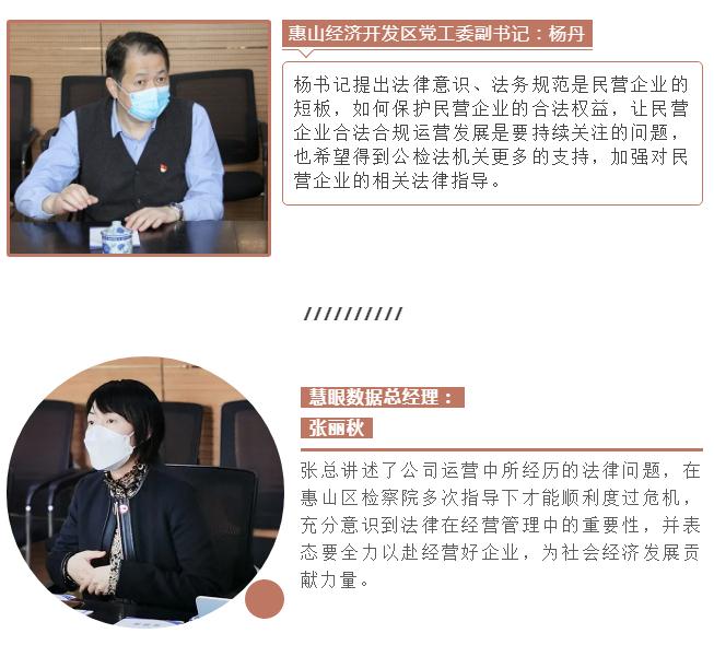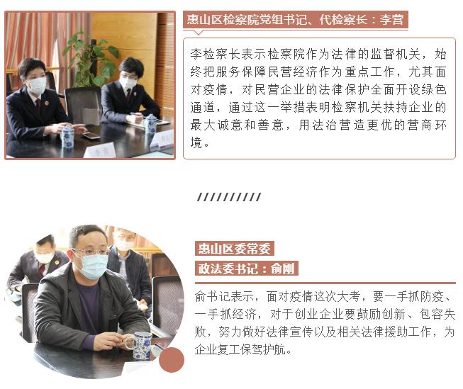 無錫市及惠山區(qū)檢察院在疫情防控的關鍵時期主動走進園區(qū)、深入企業(yè),為入園企業(yè)實時提供法律咨詢、政策宣導、糾紛調(diào)解等司法服務和援助保障,園區(qū)和企業(yè)感受到了公檢法機構(gòu)主動服務民營企業(yè)的關懷與用心。