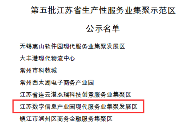 2020年6月4日,江蘇省發(fā)改委公示了第五批省級生產(chǎn)性服務(wù)業(yè)集聚示范區(qū)的認(rèn)定名單,江蘇數(shù)字信息產(chǎn)業(yè)園榜上有名。