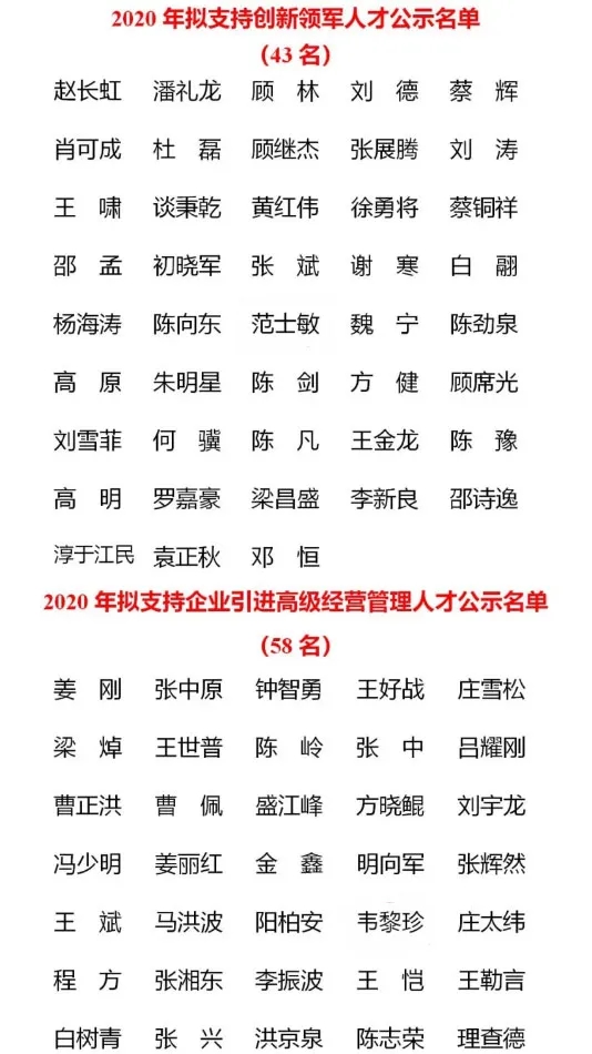 2020年無錫市“太湖人才計劃”由市人才工作領導小組辦公室、市科技局、市工業(yè)和信息化局、市財政局、市人力資源社會保障局、市衛(wèi)生健康委等部門組織實施,經項目初審、現場考察、路演評審、市人才辦聯席會議審議等程序,遴選出擬支持創(chuàng)業(yè)領軍人才團隊5 個、創(chuàng)新領軍人才團隊3 個、頂尖醫(yī)學專家團隊8個、高端醫(yī)學專家團隊1個、創(chuàng)業(yè)領軍人才110名、創(chuàng)新領軍人才43名、企業(yè)引進高級經營管理人才58名、高端會計人才5名、先進制造技能領軍人才11 名、優(yōu)秀鄉(xiāng)土人才12名、鄉(xiāng)土人才大師工作室8個。入園企業(yè)江蘇金木土科技有限公司范士敏入選創(chuàng)新領軍人才、無錫市和光新能源科技有限公司韋黎珍入選高級經營管理人才。