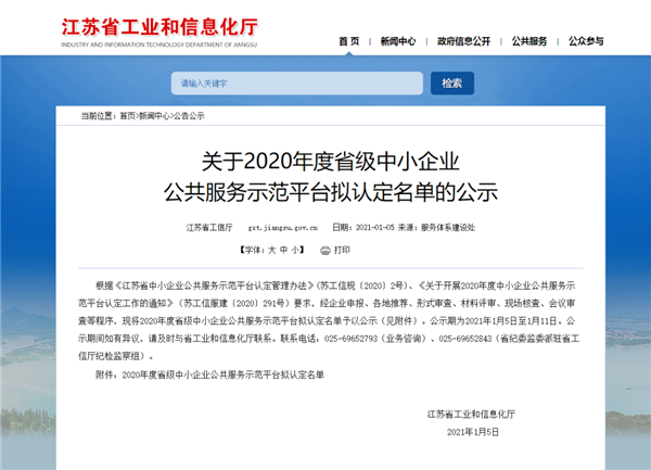 碩果累累|“5+5+3”2020年江蘇省中小企業(yè)公共服務(wù)示范平臺