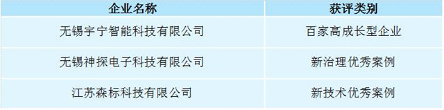 近日,省市工信主管部門先后公示了2021年無錫市數字經濟“雙百”企業、“五新”優秀案例以及省重點推廣應用的新技術新產品目錄名單,入園企業無錫宇寧智能科技有限公司成功獲評“百家高成長型企業”、無錫神探電子科技有限公司成功入選“新治理優秀案例”、江蘇森標科技有限公司分別入選“新技術優秀案例”與“省重點推廣應用的新技術新產品目錄”。