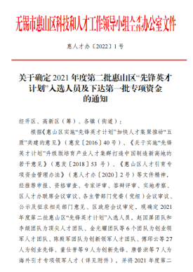 喜訊|數字園三名高層次人才入選2021年度第二批惠山區“先鋒英才”計劃