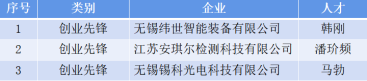 近日,無錫市惠山區科技和人才工作領導小組人才工作辦公室公布了2021年度第二批惠山區“先鋒英才計劃”入選人員,入園企業無錫緯世智能裝備有限公司韓剛、江蘇安琪爾檢測科技有限公司潘玠頻、無錫錫科光電科技有限公司馬勃成功入選惠山區“先鋒英才”計劃—創業先鋒。