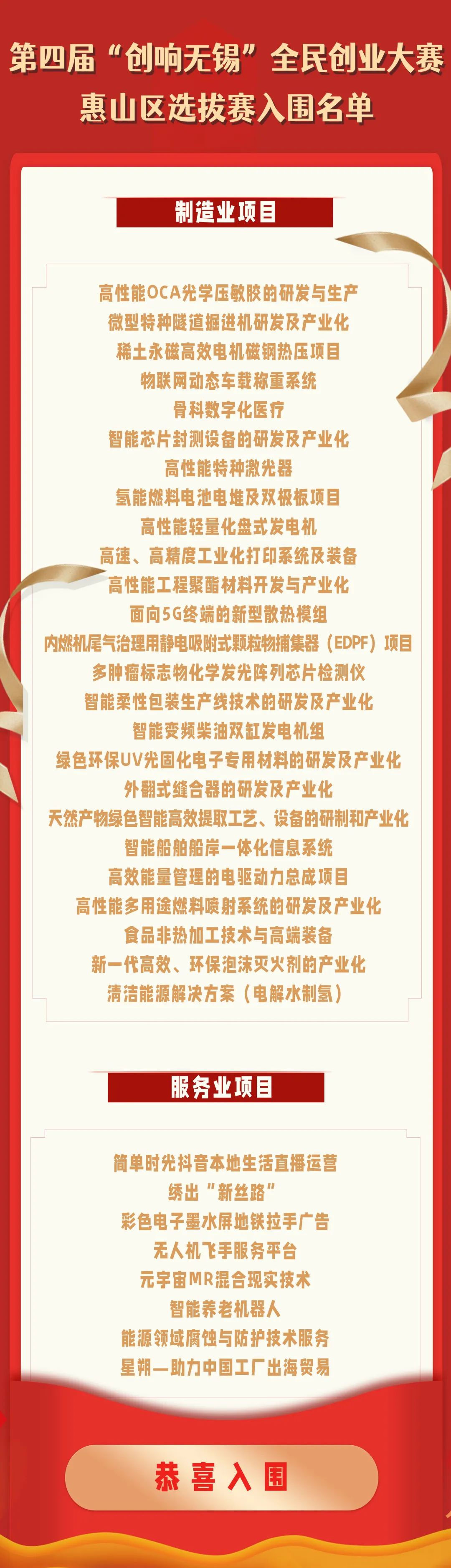 第四屆“創(chuàng)響無錫”全民創(chuàng)業(yè)大賽惠山區(qū)選拔賽參賽名單出爐啦!