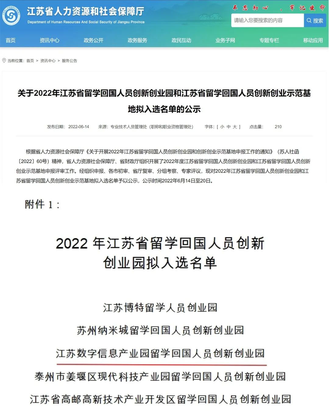 喜訊|江蘇數字信息產業園入選江蘇省留學回國人員創新創業園