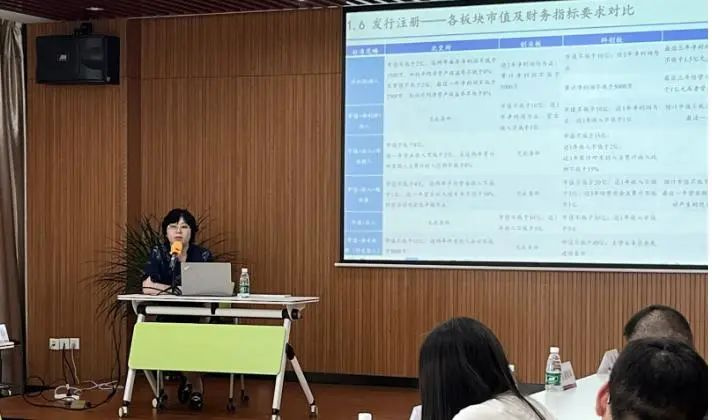 本次活動(dòng)由華英證券有限公司業(yè)務(wù)總監(jiān)付玉嬌女士作重點(diǎn)分享,主要圍繞多層次資本市場(chǎng)基本情況及現(xiàn)狀、注冊(cè)制改革政策實(shí)施情況、對(duì)中小企業(yè)融資方式產(chǎn)生的影響、企業(yè)上市板塊選擇及上市重點(diǎn)關(guān)注的問(wèn)題等方面進(jìn)行了詳細(xì)介紹,通過(guò)結(jié)合案例分析讓在座企業(yè)家對(duì)IPO這項(xiàng)長(zhǎng)期系統(tǒng)工程有了更全面的認(rèn)知。付總監(jiān)強(qiáng)調(diào),注冊(cè)制改革是漸進(jìn)式、系統(tǒng)性的改革,未來(lái)將為中小企業(yè)股權(quán)融資提供更好的通道與空間,參會(huì)企業(yè)紛紛表示受益良多。