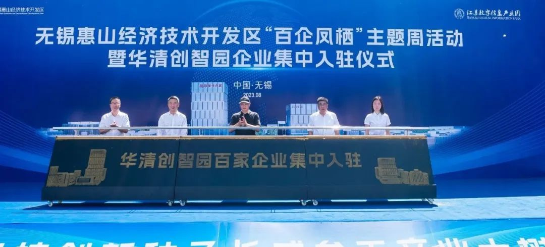 2023年8月3日上午,無錫惠山經濟技術開發區“百企鳳棲”主題周活動暨華清創智園企業集中入駐儀式在華清創智園廣場成功舉行。