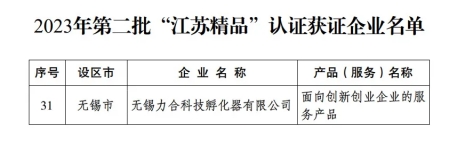 日前,2023年第二批“江蘇精品”認證獲證產品(服務)名單出爐,無錫力合科技孵化器“面向創(chuàng)新創(chuàng)業(yè)企業(yè)的服務產品”通過“江蘇精品”認證。