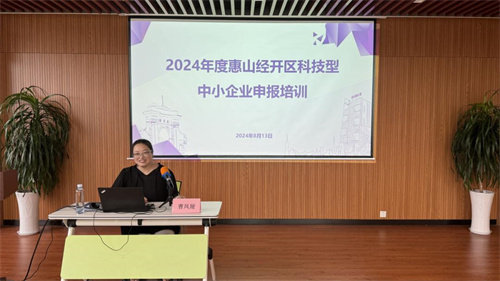 8月13日,惠山經開區科技局主辦、江蘇數字信息產業園承辦的2024年度科技型中小企業培訓會在清華創新大廈輔樓路演廳舉行,惠山經開區科技局科長湯皆出席本次會議,并邀請無錫嘉譽會計師事務所曹鳳婭主講本次培訓會。