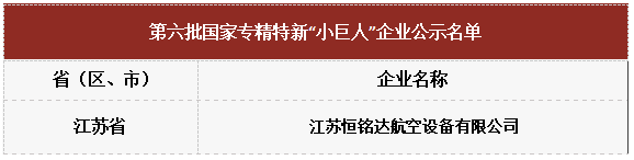 近日,江蘇省工業和信息化廳公示了第六批國家級專精特新“小巨人”企業名單,園區企業江蘇恒銘達航空設備有限公司憑借行業領先的關鍵技術和卓越的產品創新能力成功入選。