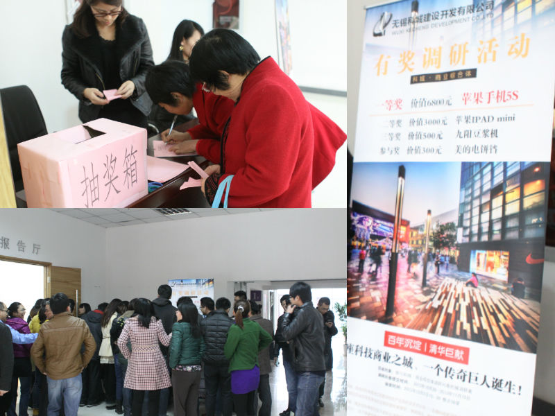 2013年12月5日下午3時(shí),由江蘇數(shù)字信息產(chǎn)業(yè)園無錫科城建設(shè)開發(fā)有限公司主辦的科城·商業(yè)綜合體有獎(jiǎng)?wù){(diào)研抽獎(jiǎng)活動(dòng)在清華創(chuàng)新大廈輔樓報(bào)告廳隆重舉行,無錫科城建設(shè)開發(fā)有限公司總經(jīng)理、無錫力合科技孵化器有限公司總經(jīng)理葉華民,江蘇數(shù)字信息產(chǎn)業(yè)園發(fā)展有限公司副總經(jīng)理張小平、無錫力合科技孵化器有限公司副總經(jīng)理陳國(guó)棟等領(lǐng)導(dǎo)出席,入園企業(yè)白領(lǐng)及周邊社區(qū)居民300余人參加了本次活動(dòng)。