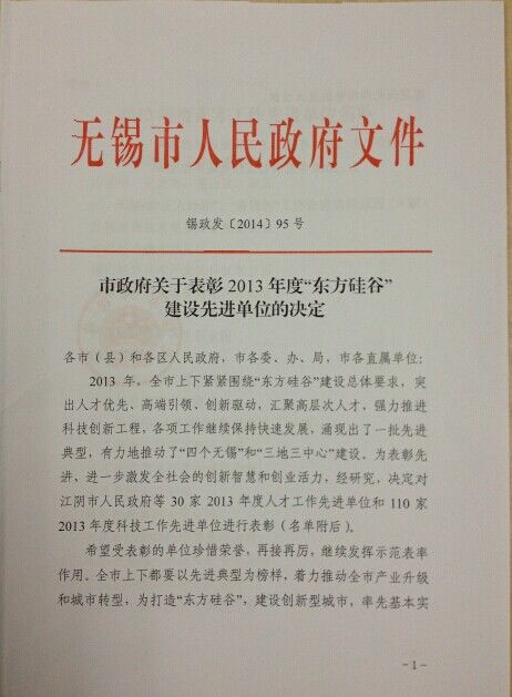 園區獲“2013年度無錫市優秀產學研合作研發機構”表彰