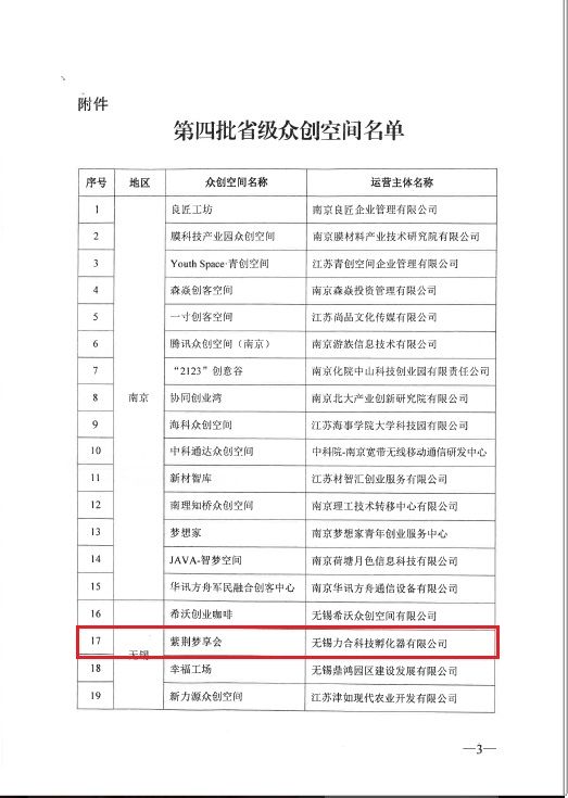 恭喜無(wú)錫力合科技孵化器有限公司的紫荊夢(mèng)享會(huì)榮獲省級(jí)眾創(chuàng)空間稱(chēng)號(hào)!