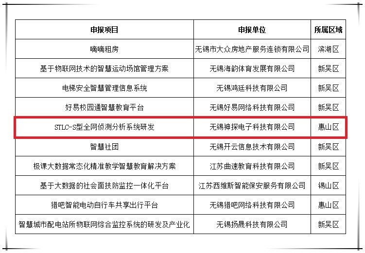 近日,從無錫市信息化和無線電管理局獲悉數字園入園企業無錫神探電子科技有限公司的STLC-S型全網偵測分析系統研發入選十大2016年度無錫市智慧城市建設示范項目。