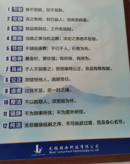 除此之外,在領業,團隊還奉行十二種需躬行的美德,其中包括了“勤奮與真誠”。劉龍將勤奮定義為,“黃金時,要珍惜;有所做,有所為”;真誠定義為“與人不加害之;于己于人,行善為先。”在領業辦公樓的很多顯眼位置,都可以看到其濃縮智慧的文化元素,而這些元素也早已融入了每一位領業人的心中,成為了推動企業向前發展的強引擎。